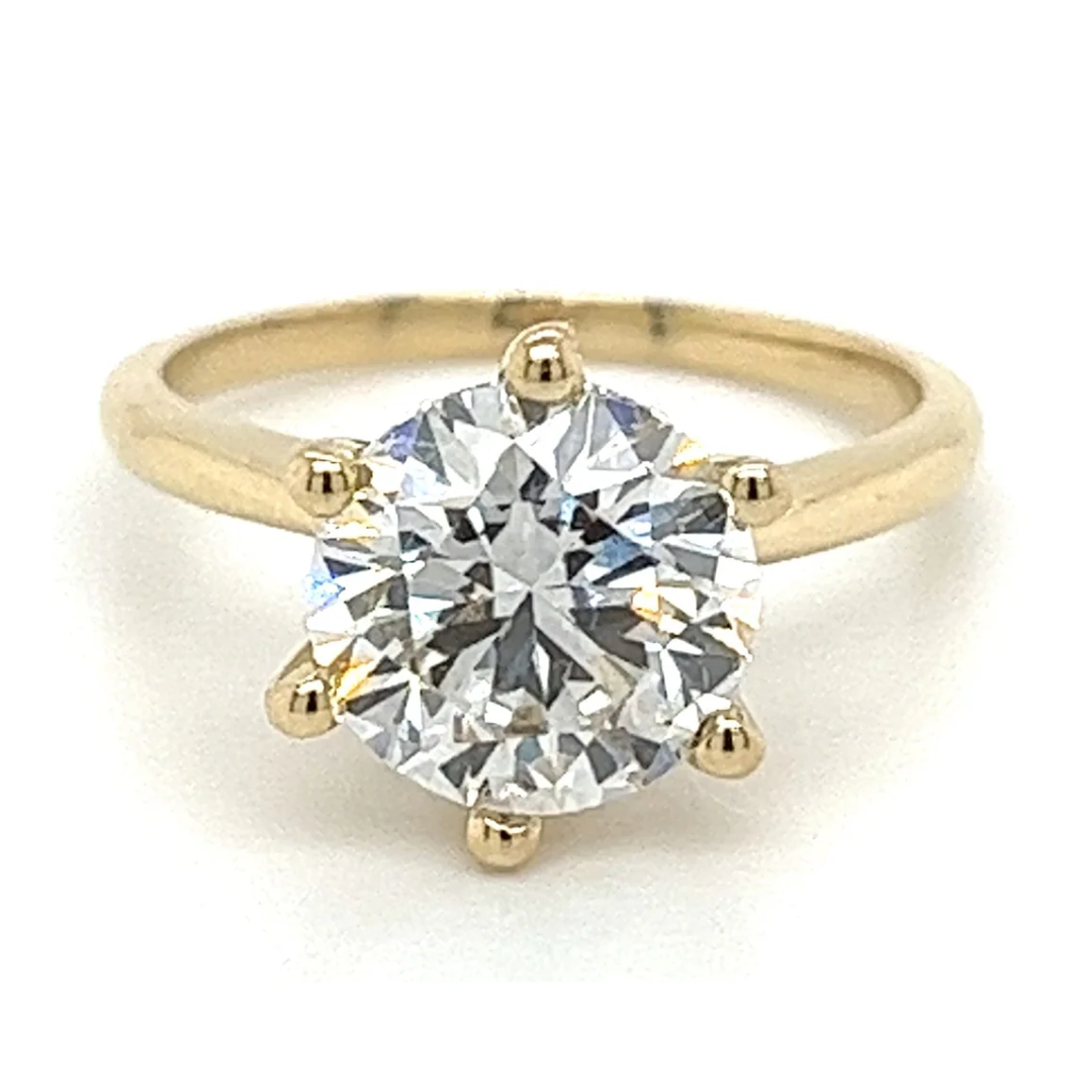 Ring خطوبة من الذهب الأصفر عيار 14 قيراطًا مزروع في المختبر، مرصع بماس سوليتير بستة رؤوس، 2.60 قيراط
