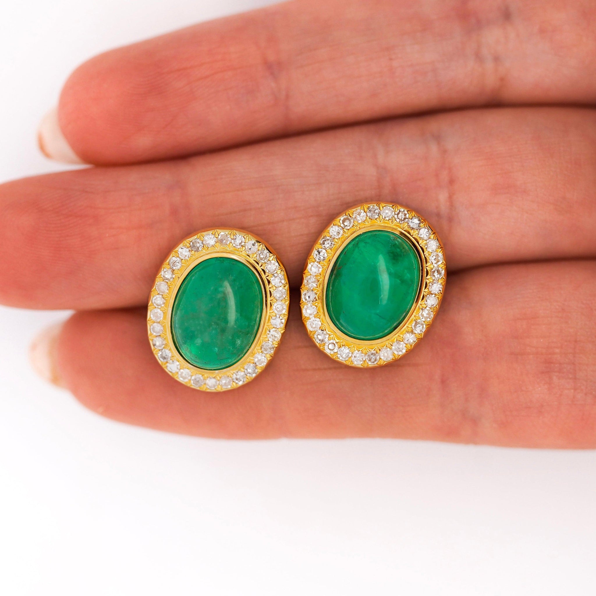 8.47 قيراط من الزمرد الكابوشون والأقراط المحاطة بالألماس في ذهب عيار 18