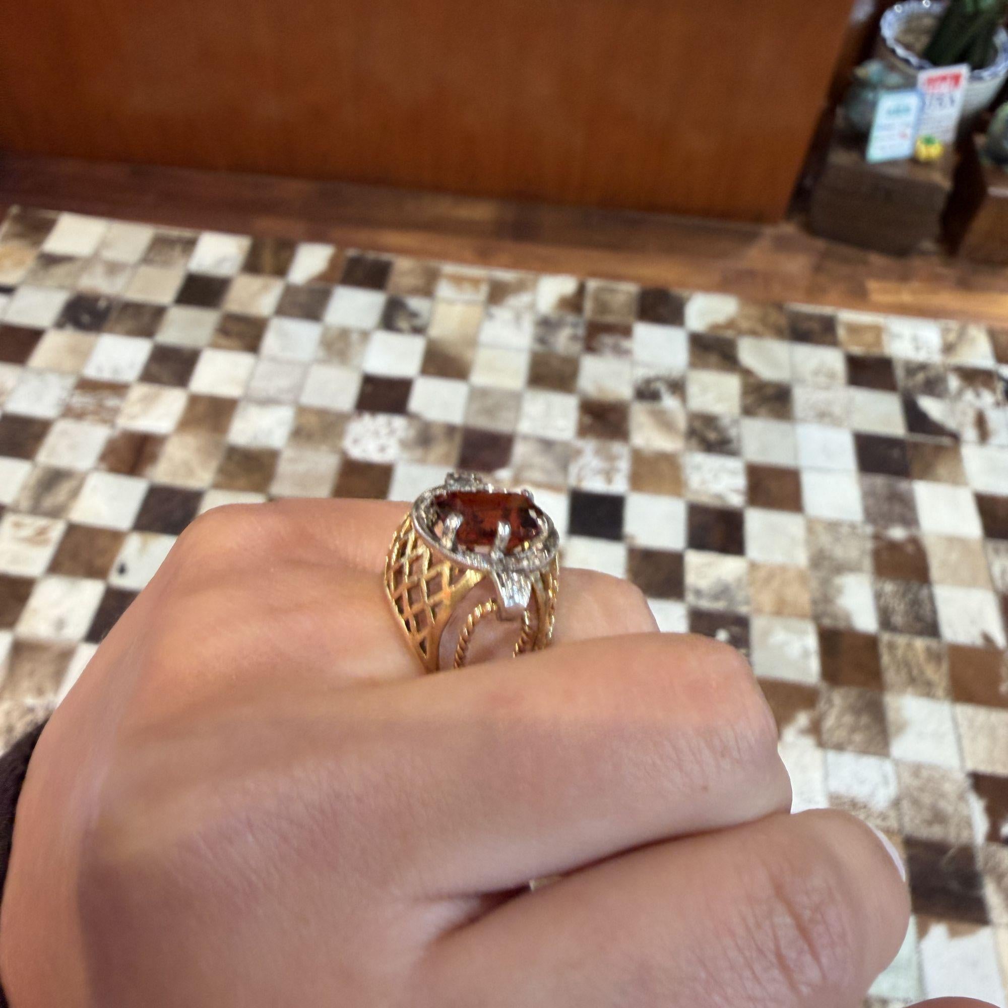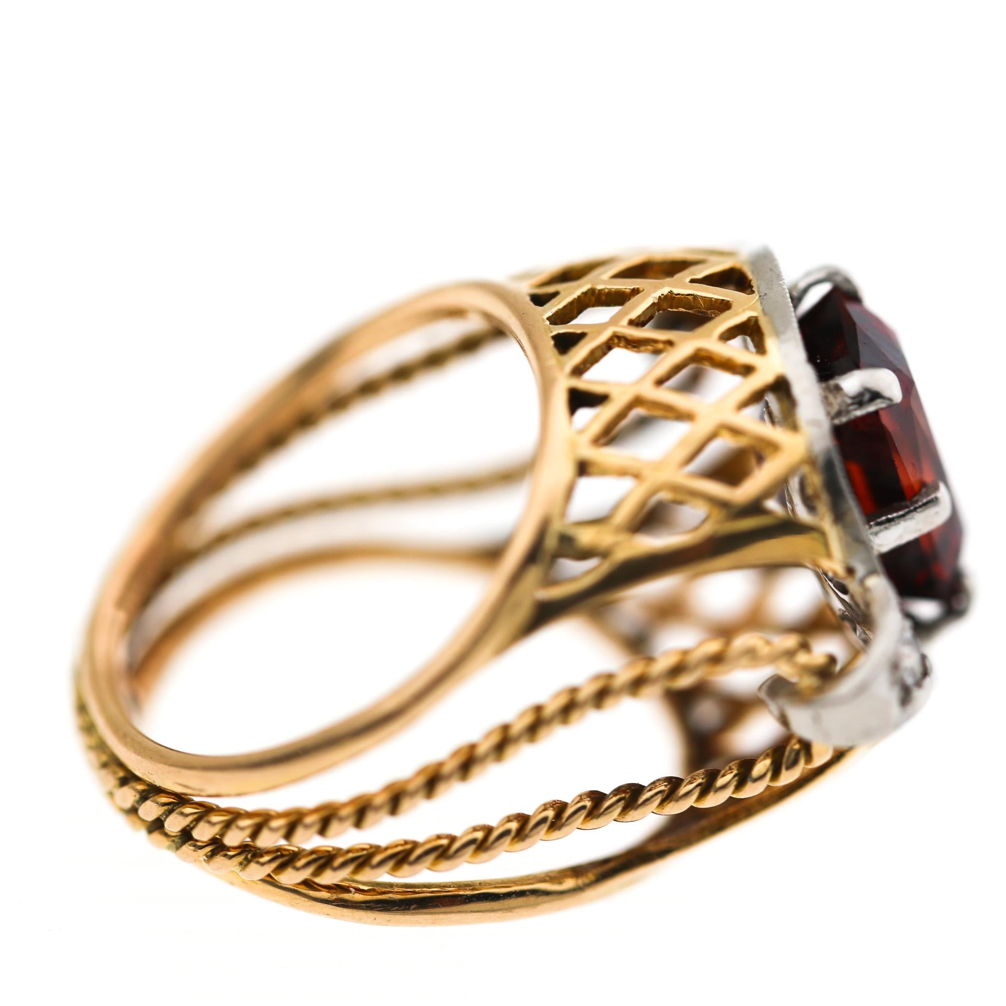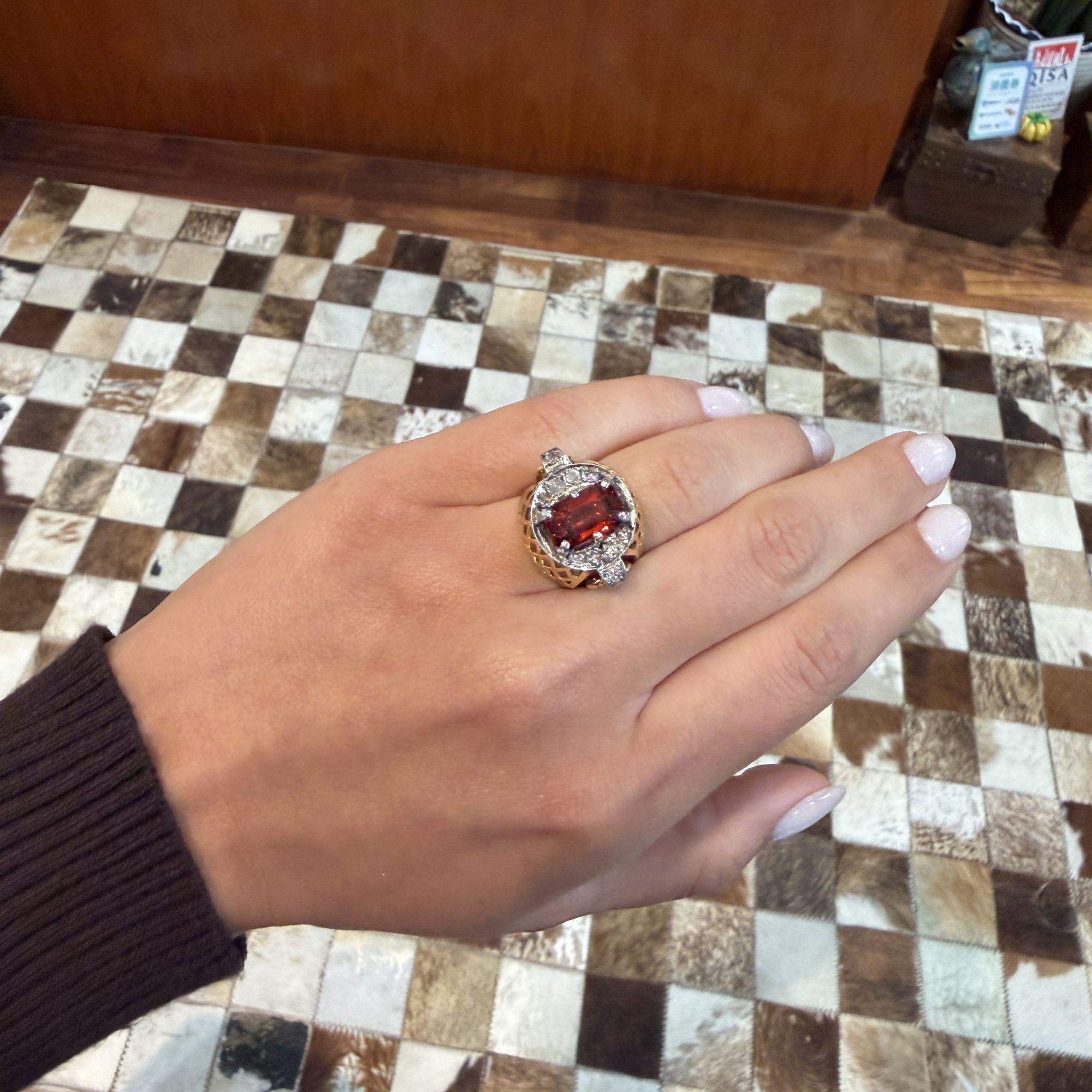 4.65 Carat Spessartine Garnet Diamond Lattice Wide Band 18K Two Tone Gold Ring