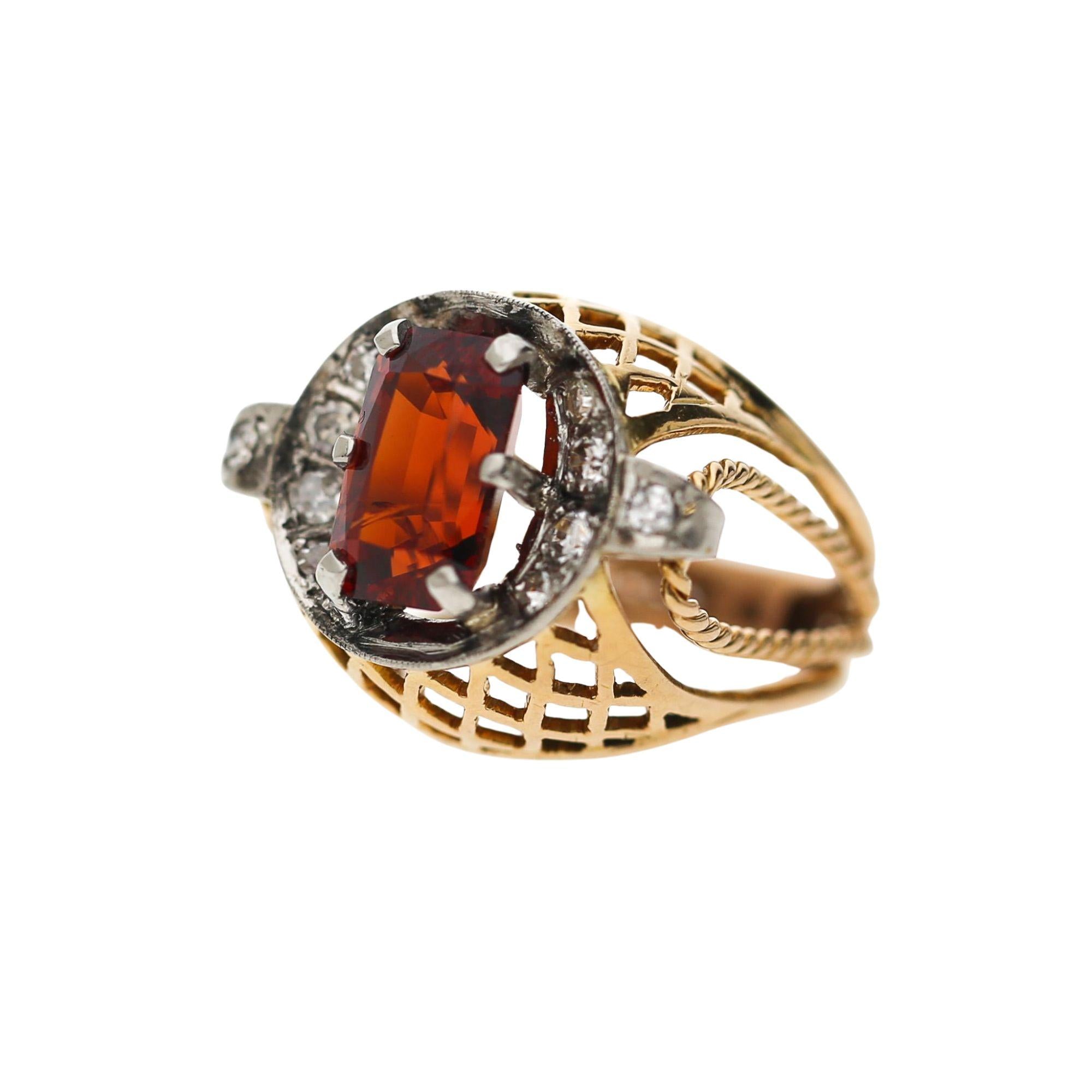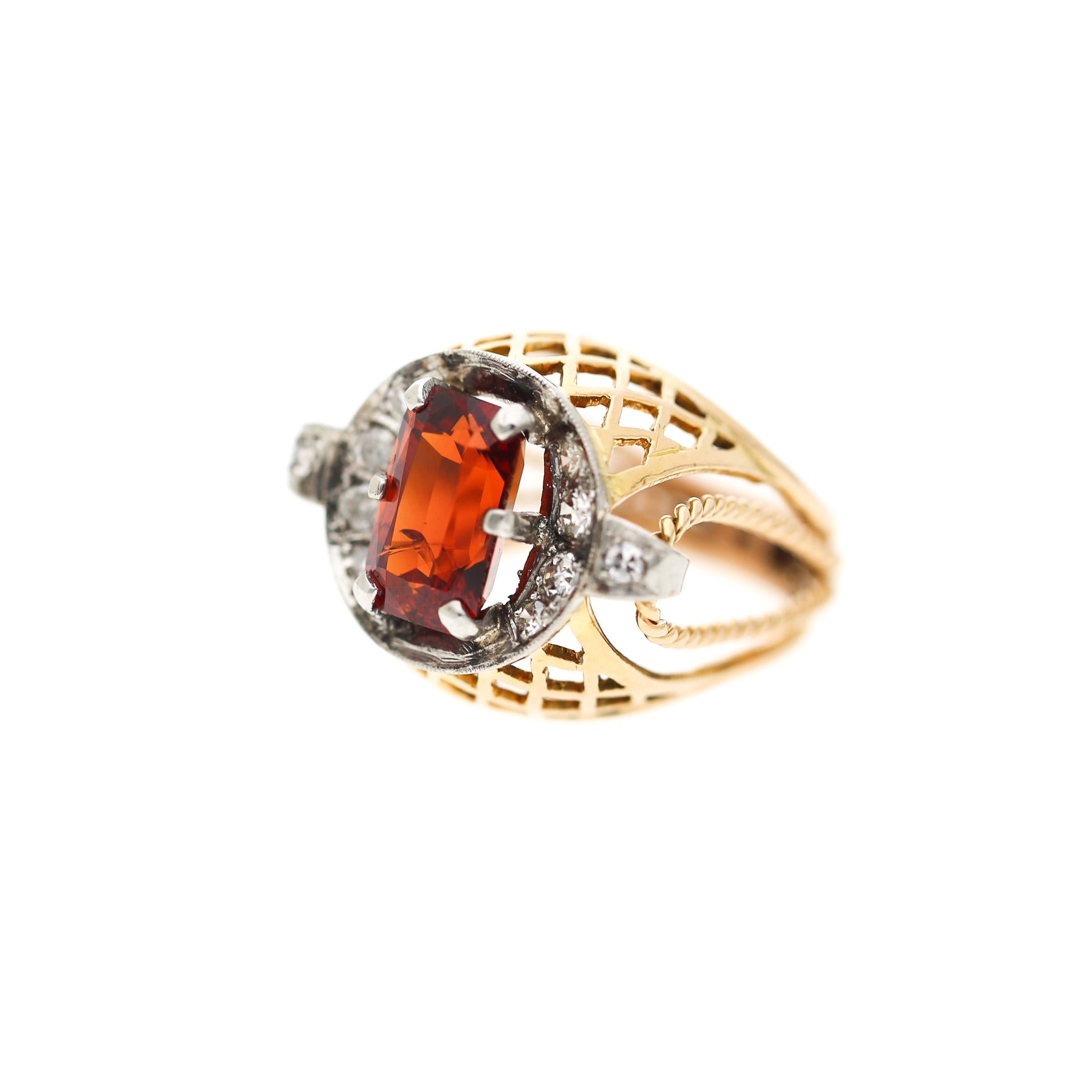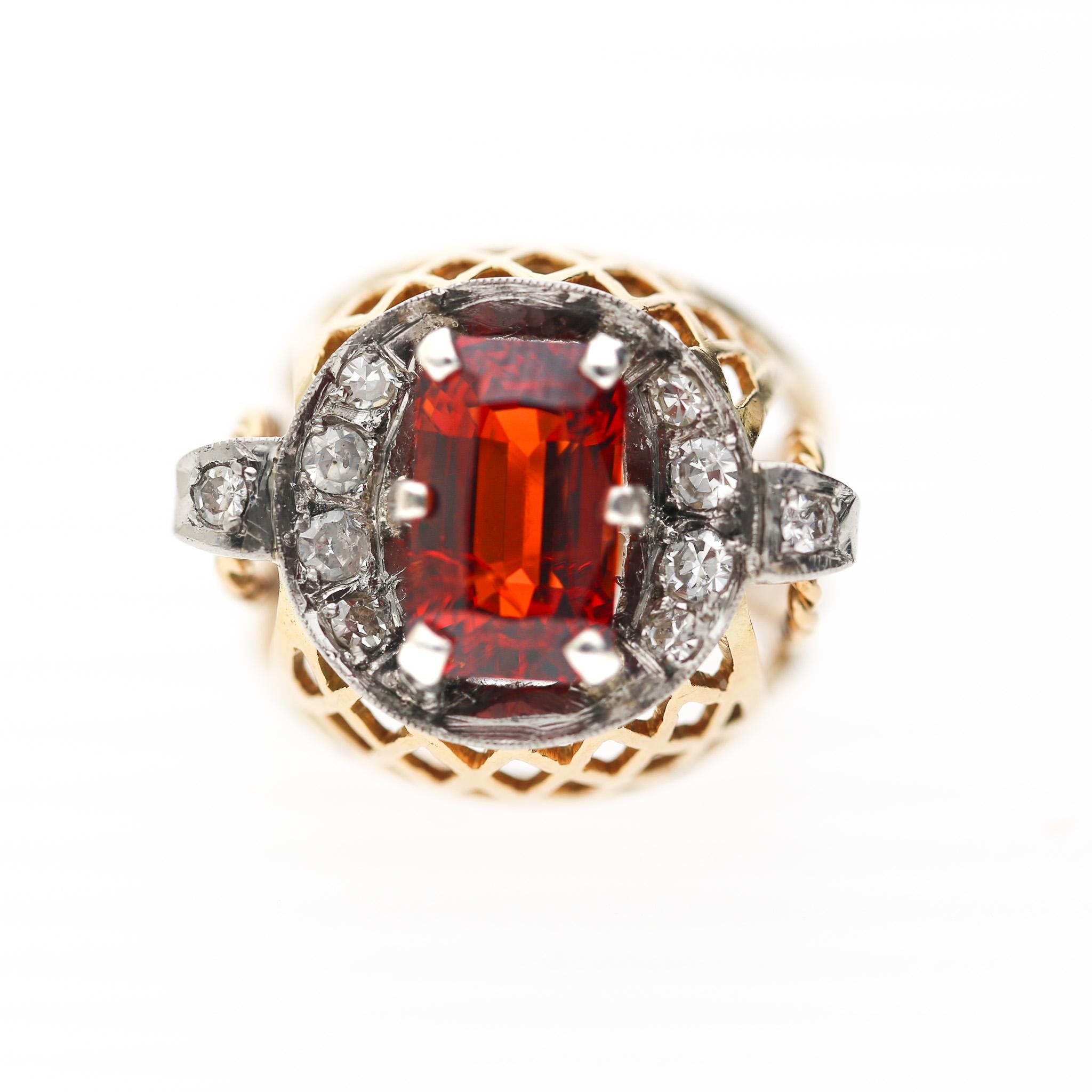 4.65 Carat Spessartine Garnet Diamond Lattice Wide Band 18K Two Tone Gold Ring