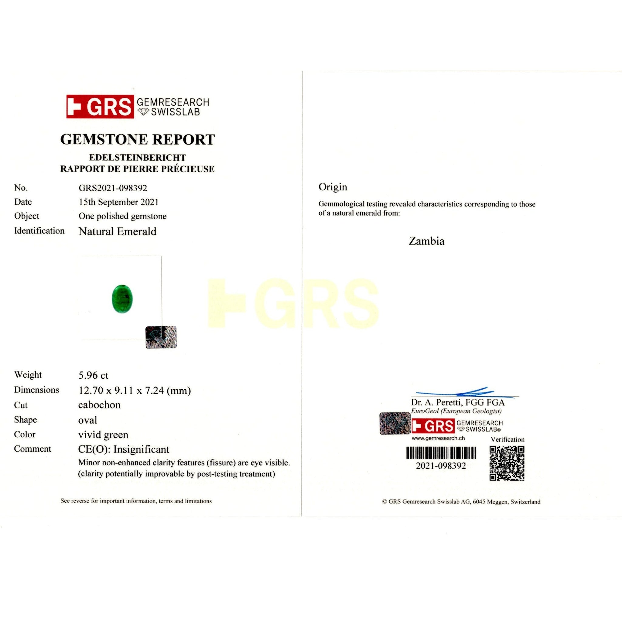 GRS-certified 17.3 carat total cabochon cut Zambian emerald and diamond clip-on earrings. Featuring 4.71 carats in baguette cut diamonds forming a halo around the bezel set center stone. The emeralds, 6.63 carats and 5.96 carats, are a certified vivid green color.Â