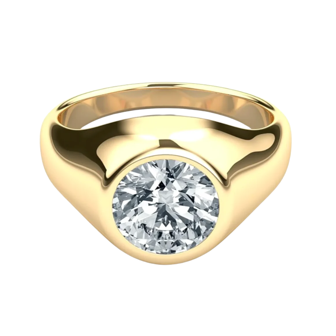 14k solid gold men's round cut lab grown diamond CVD bezel flush set solitaire ring. IGI or AGI Certified and appraised with insurance/retail value estimate.