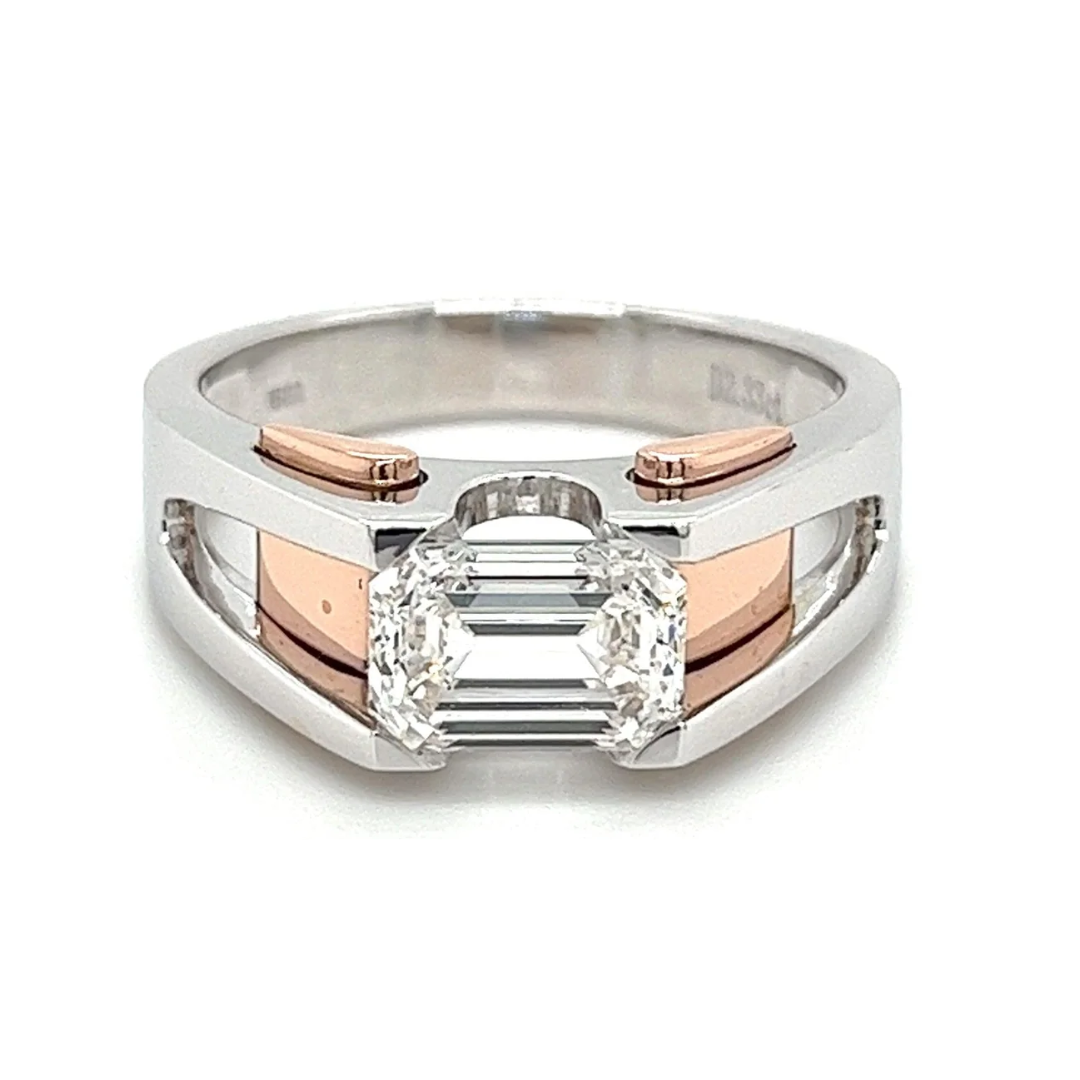 2.87 Carat Emerald Cut Lab Grown Diamond Mens Ring in 2-Tone Rose/White Gold