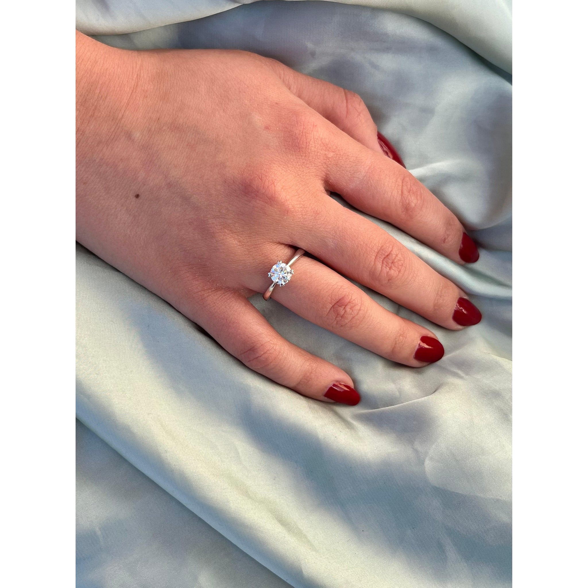 Der Ring ist in einer glatten 18k massiven Weißgoldfassung gefertigt. Perfekt für den täglichen Gebrauch und ideal für diejenigen von Ihnen Damen, die viel mit den Händen arbeiten. Die Krappen sind auch mit Kugelschreiberspitzen versehen, sodass Sie die Angst verlieren können, dass Ihr Ring in Ihrer Kleidung hängen bleibt! Der Ringschaft hat auch eine doppelt gebänderte Ausführung, die zusätzlichen Halt und Sicherheit bietet.