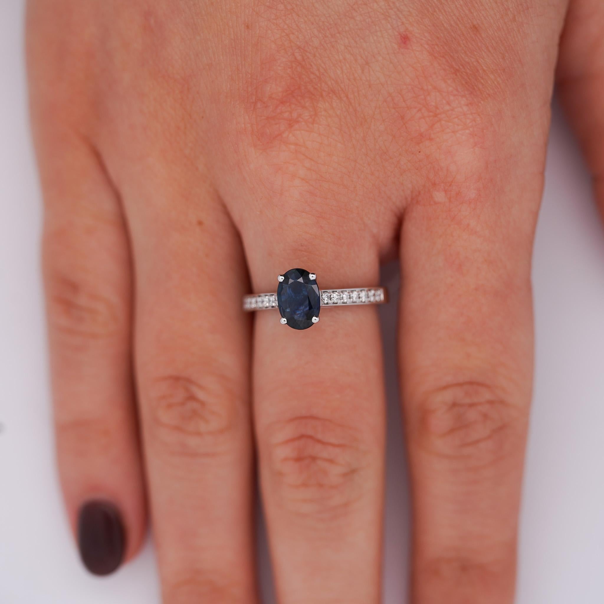 1,5-1,19 Karat Ovalschliff Tiefblauer Saphir und Diamant-Pavé-Seitensteine Kathedralenfassung 18K Gelb- oder Weißgold Ring.