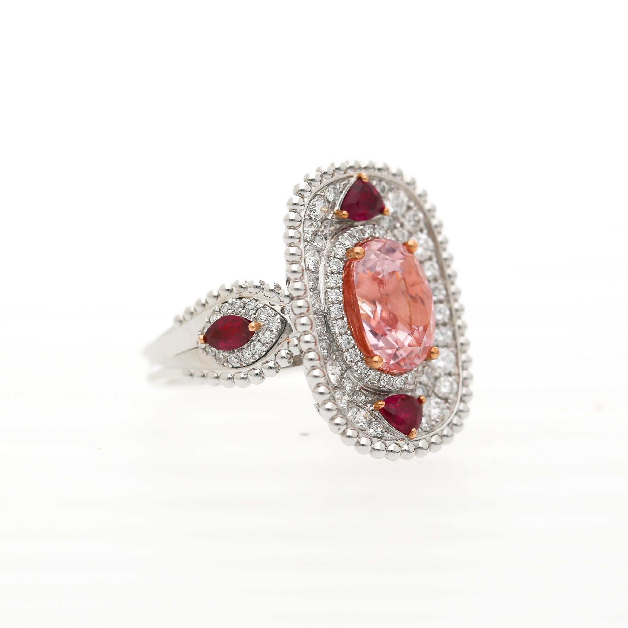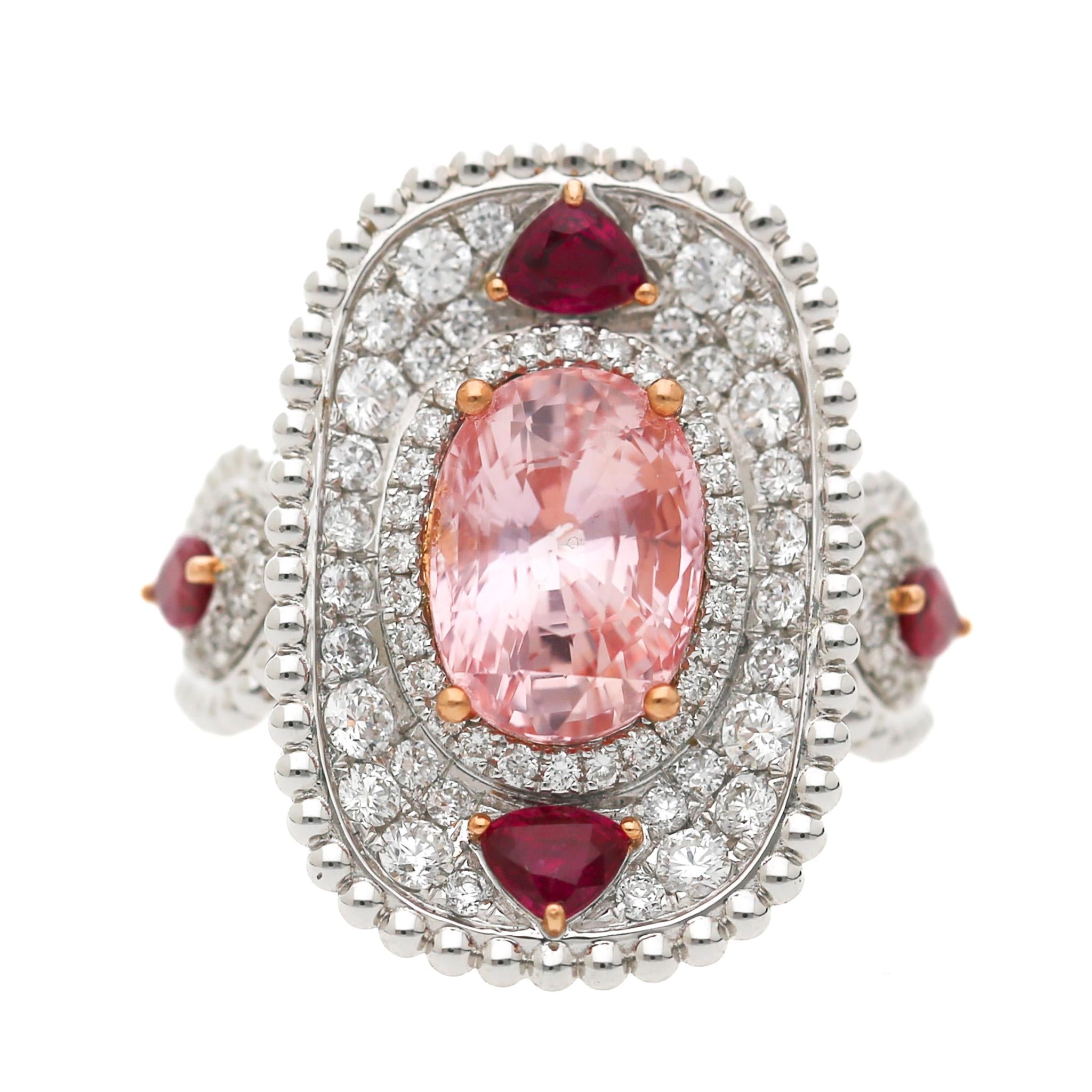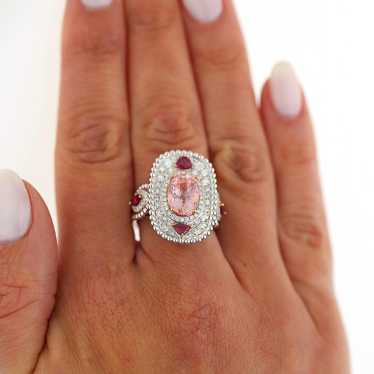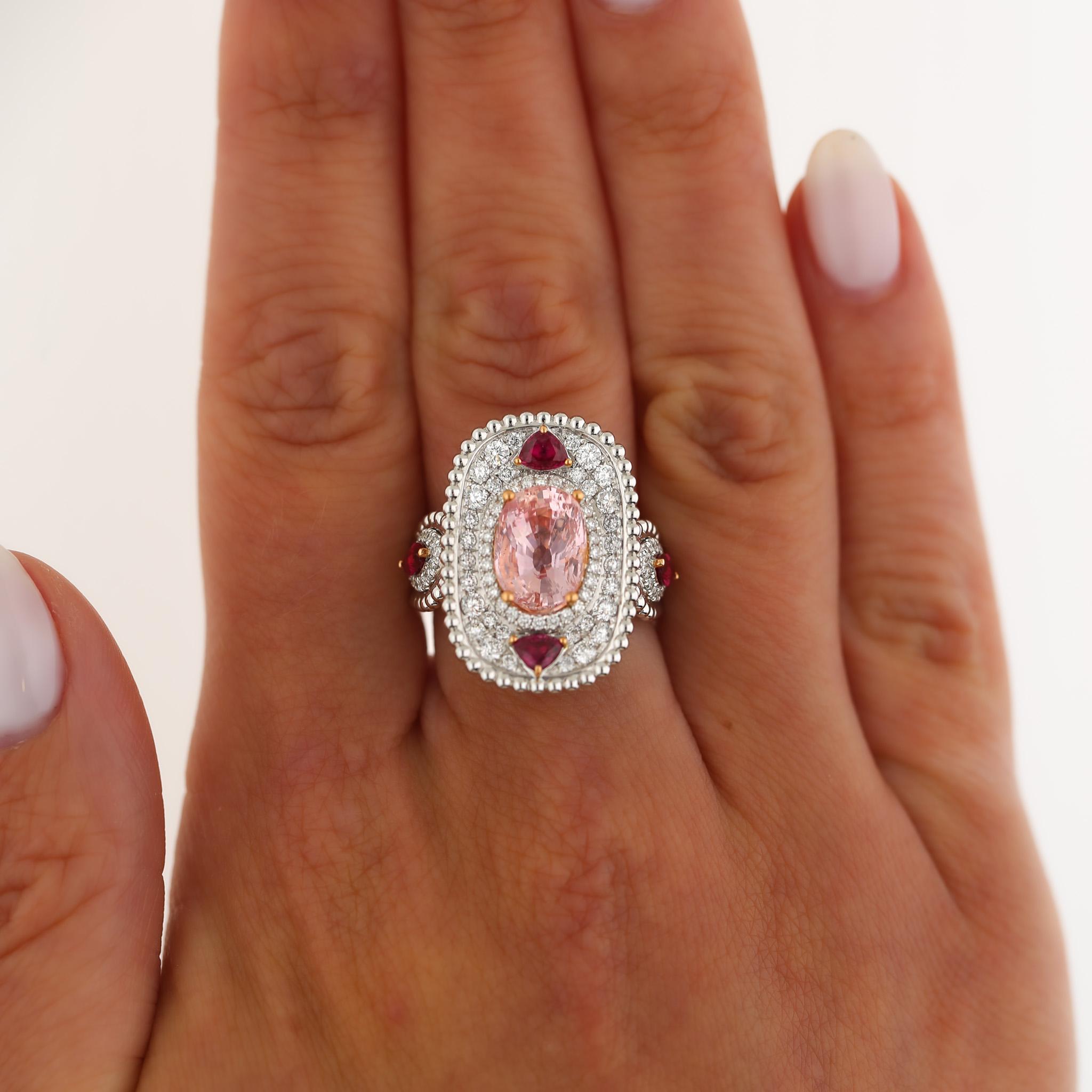 4.05 Carat Padparadscha Sapphire No Heat Sri Lanka With Ruby and Diamond Ring