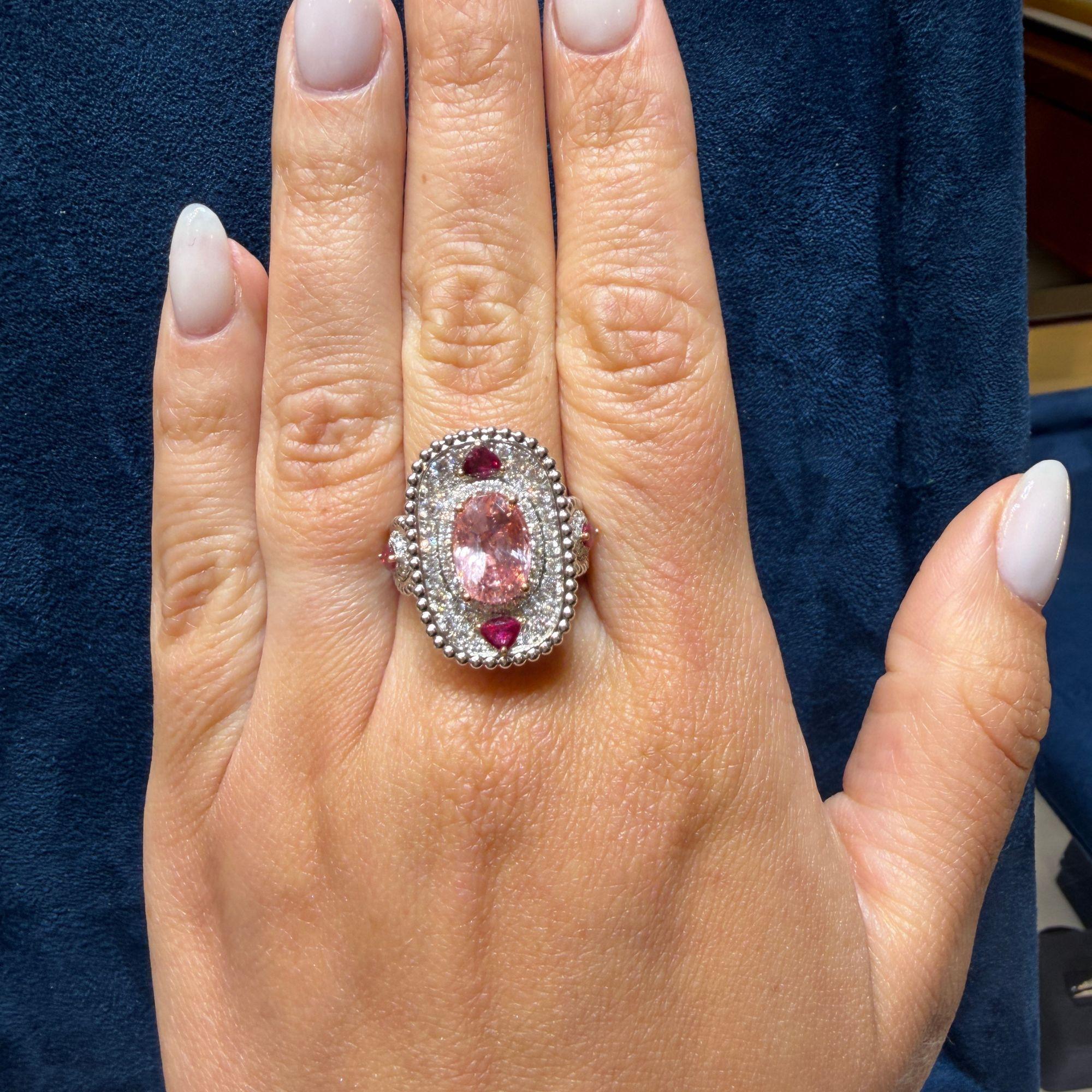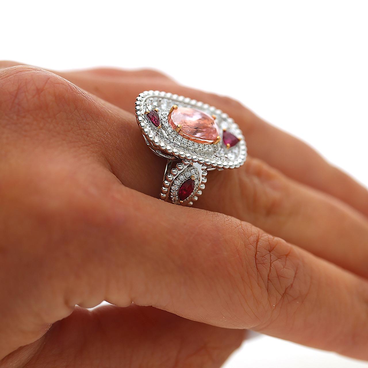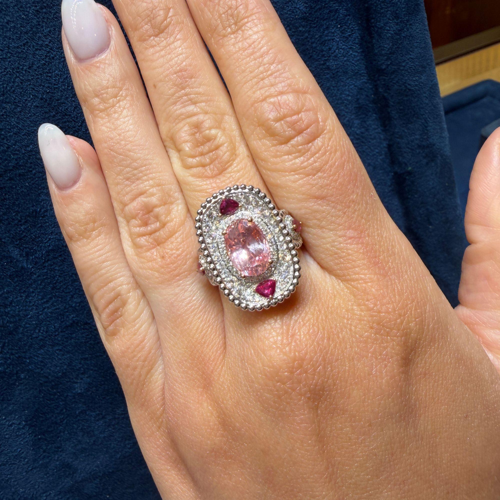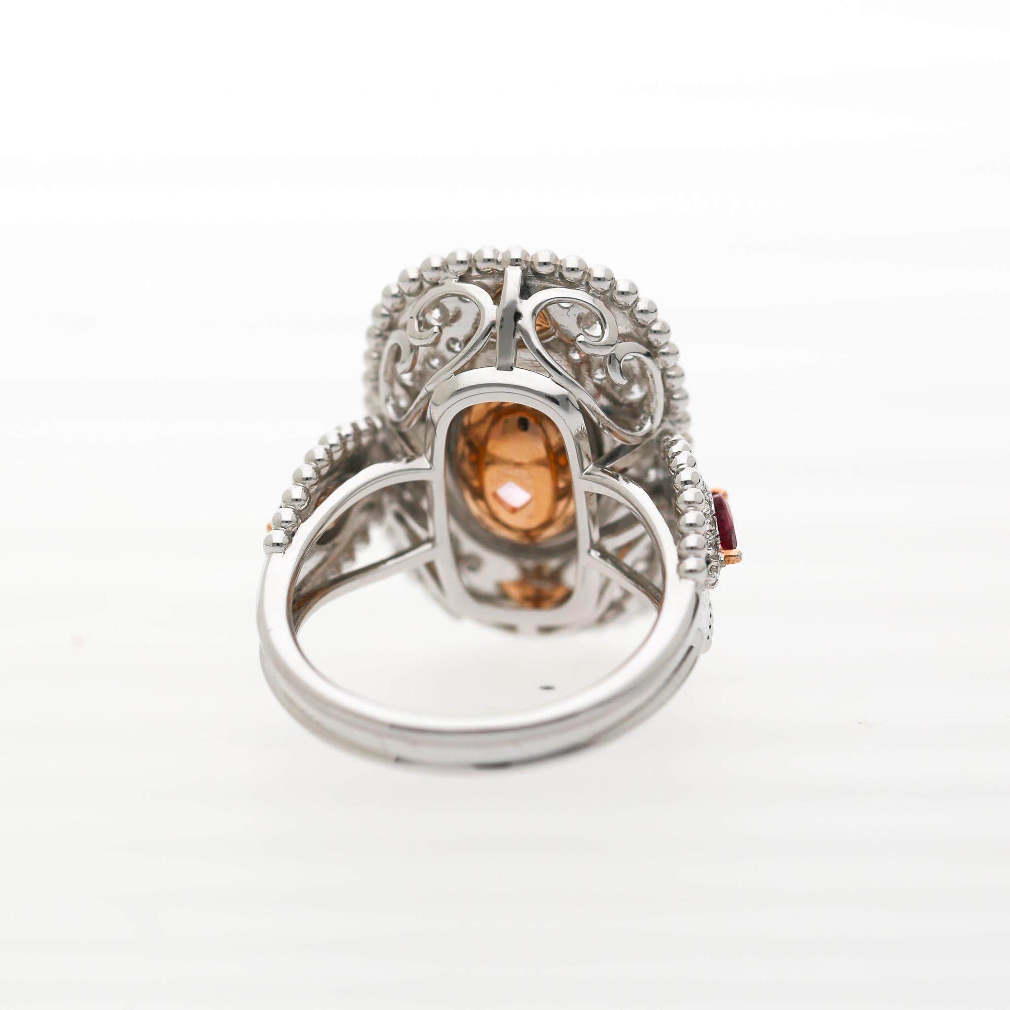 4.05 Carat Padparadscha Sapphire No Heat Sri Lanka With Ruby and Diamond Ring