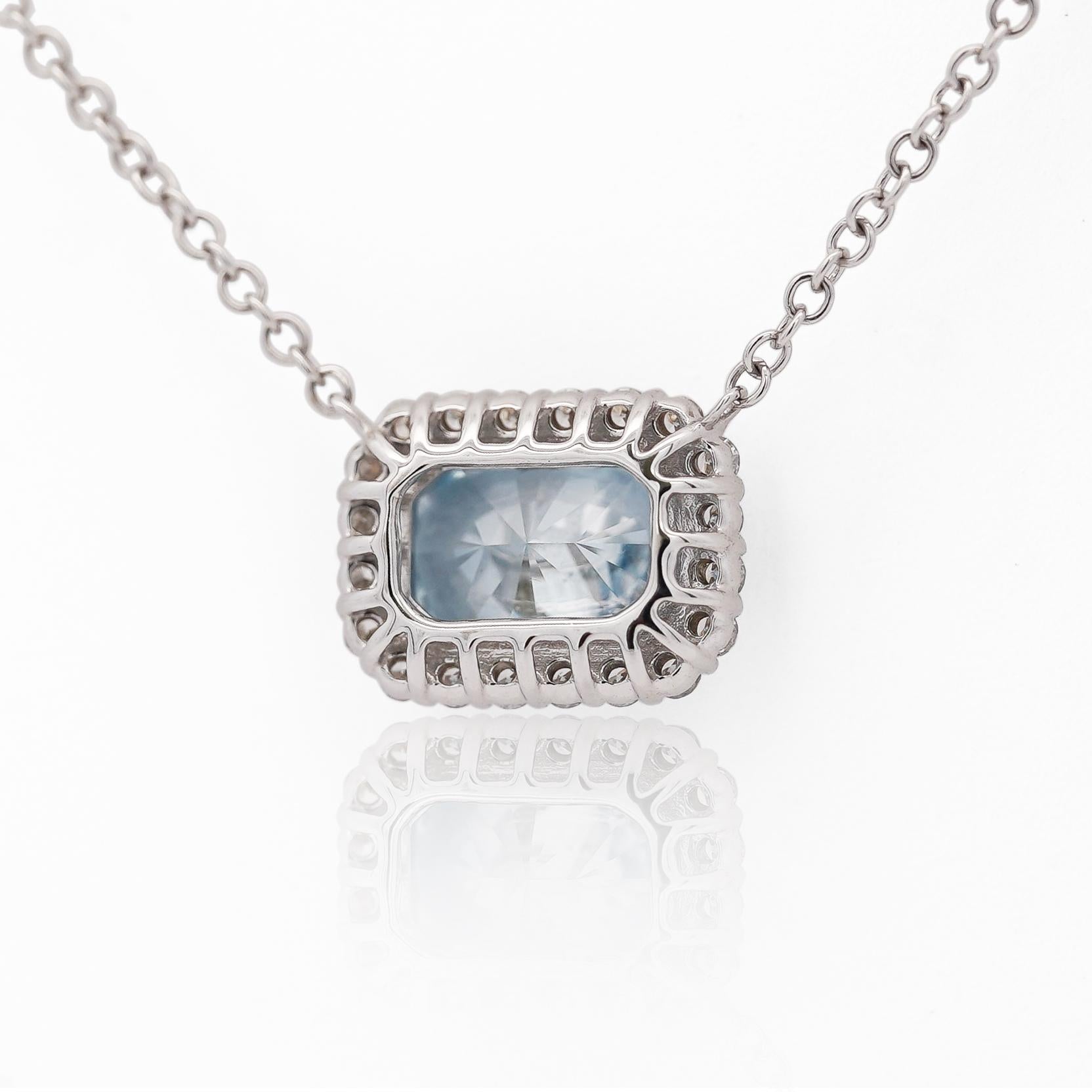 1.72 Carat Radiant Cut Blue & White Diamond Halo 14K White Gold Pendant Necklace