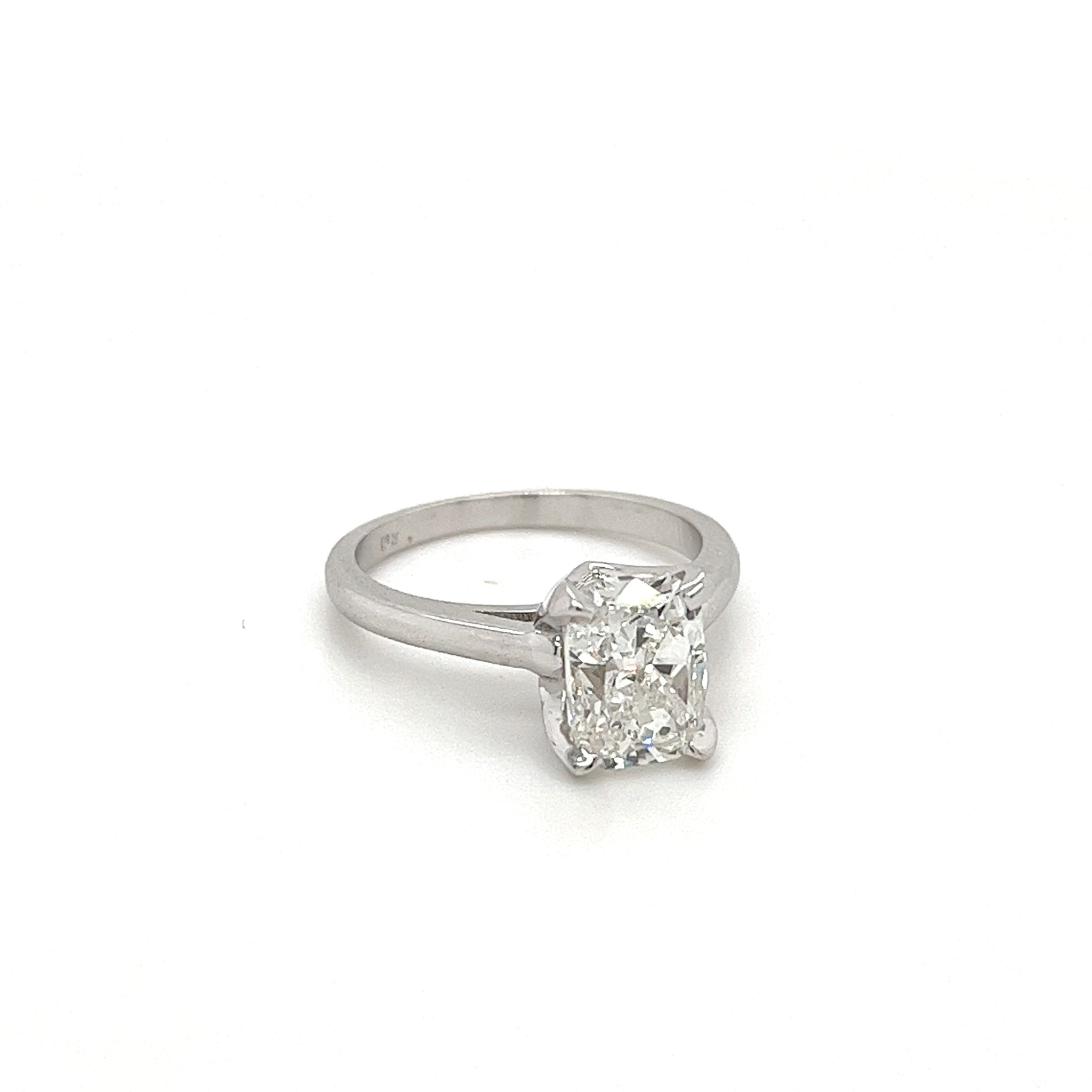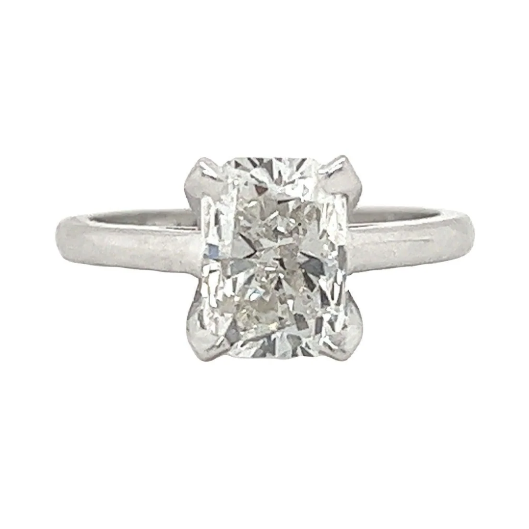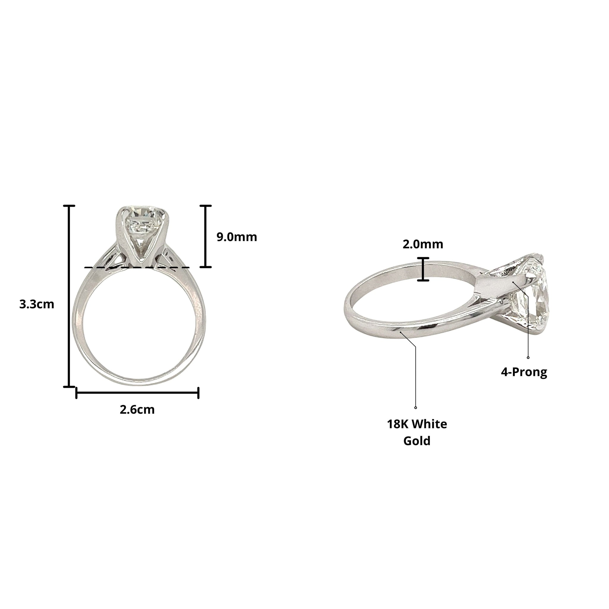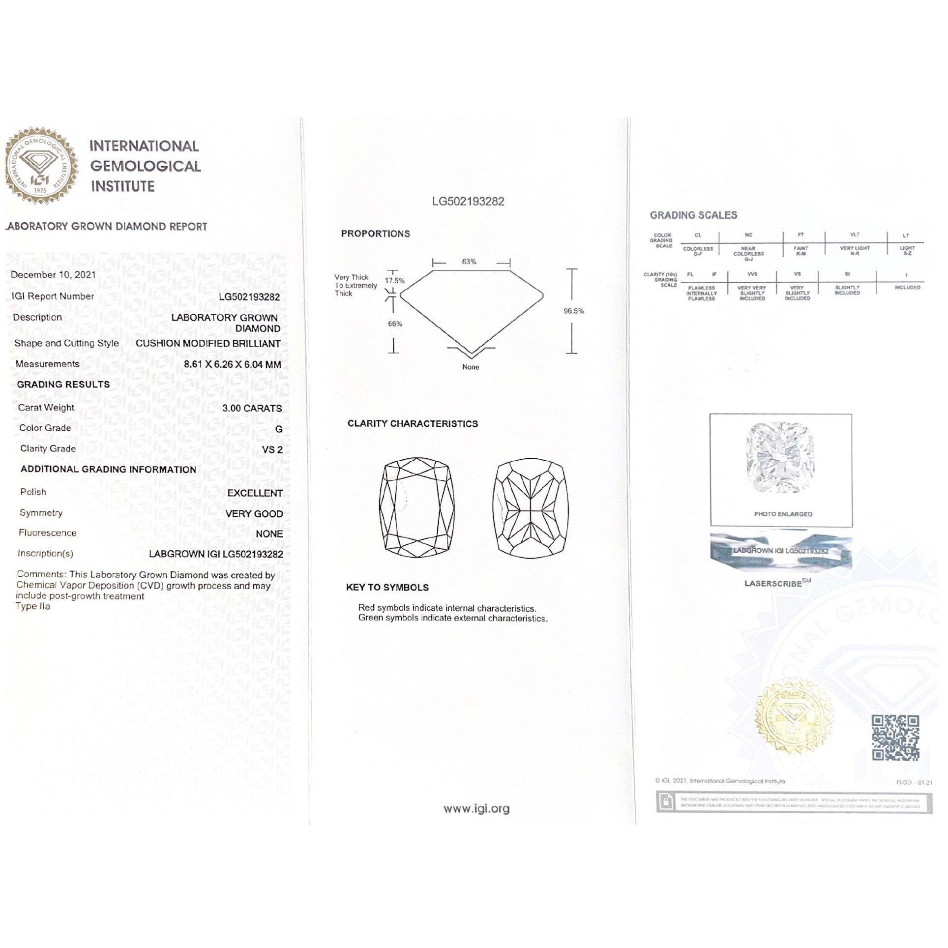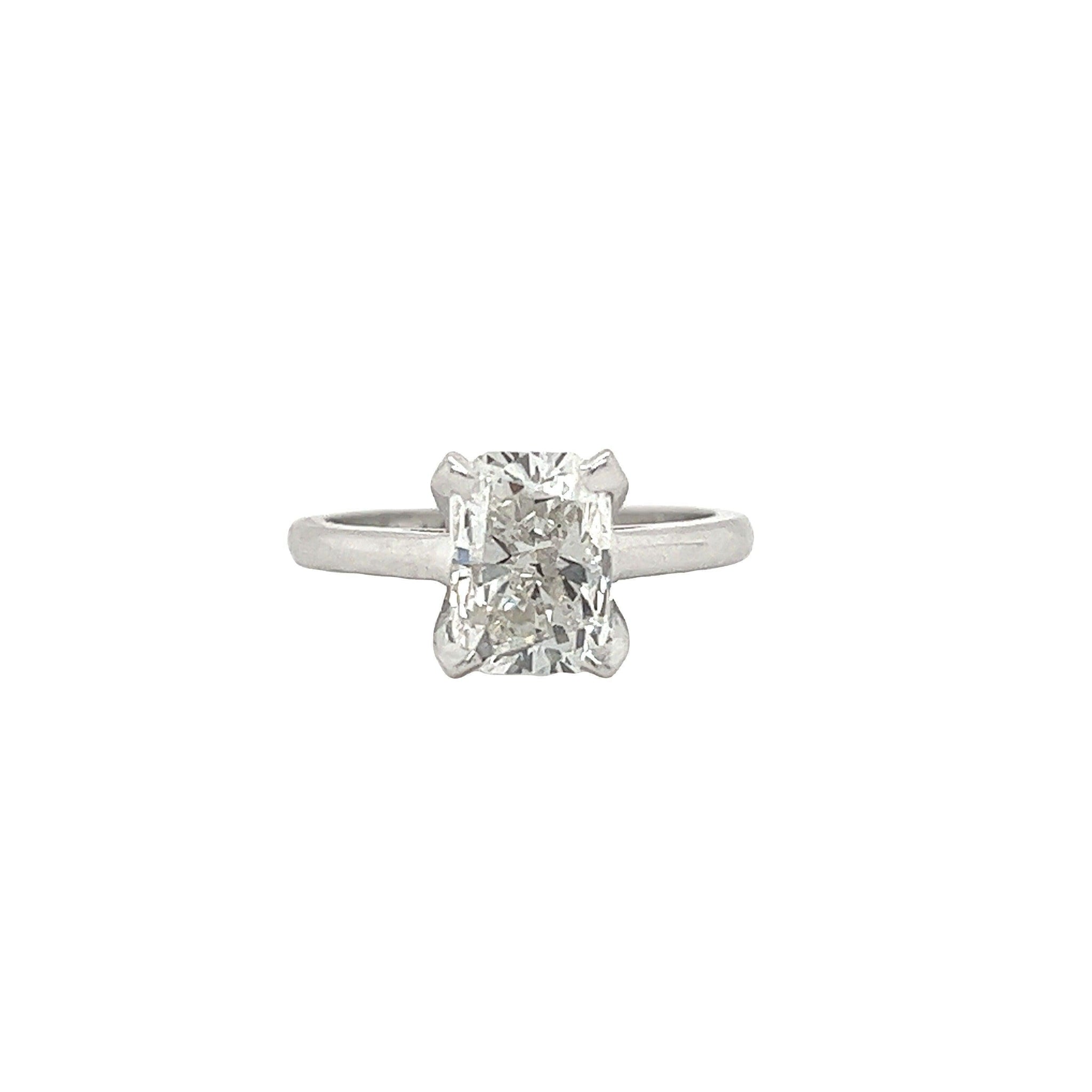 Anillo de compromiso con diamante de laboratorio Cushion Cut alargado de 3.00 quilates en oro blanco de 18k con montura solitaria. La piedra central tiene un corte excelente, con una forma Cushion alargada que se asemeja a un corte radiante. Una piedra impresionante que podemos GARANTIZAR que sorprenderá a cualquiera que la vea.