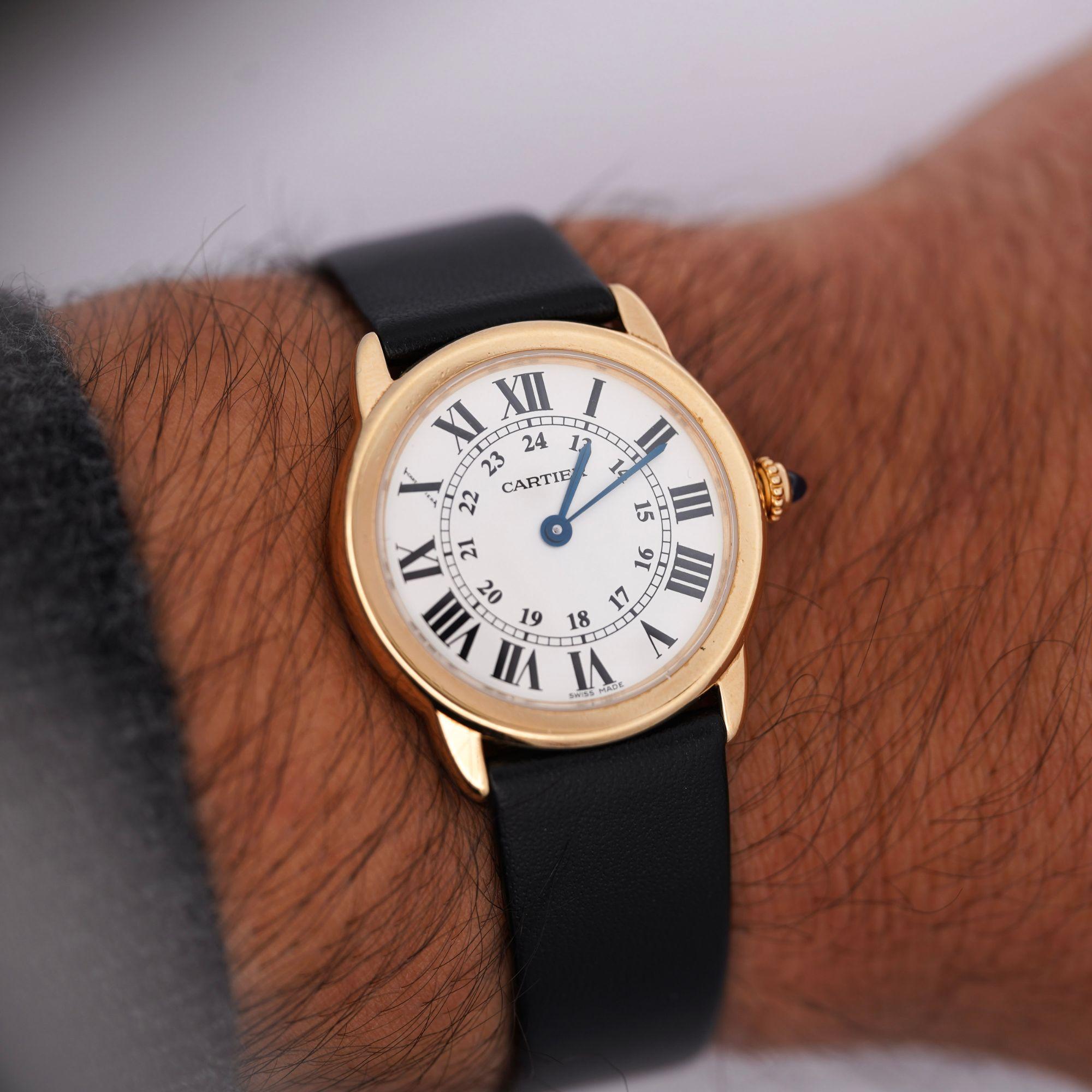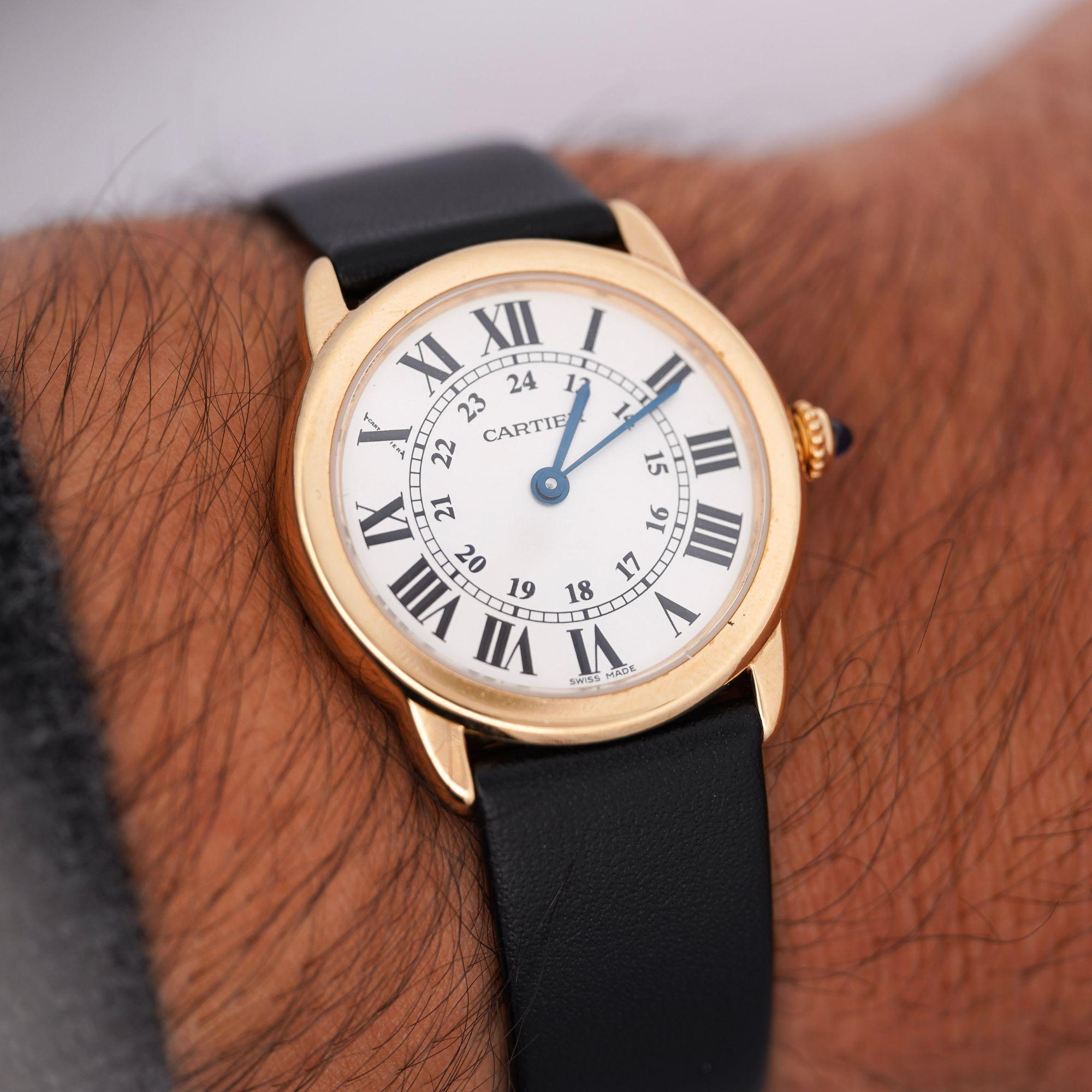 The Cartier Ronde Solo is the accessible expression of the Ronde Louis Cartier — maintaining the same perfectly round case form, Roman numeral dial, and sapphire cabochon crown that define the Ronde family, in a steel and gold construction that makes the classic Cartier dress watch silhouette available to a broader audience without compromising design integrity. Cartier, founded in Paris in 1847, has spent nearly two centuries establishing the round dress watch as the definitive form for luxury timekeeping, and the Ronde Solo carries this tradition with complete authenticity. The two-tone gold and steel construction is particularly versatile — warm enough to pair with formal attire, modern enough to wear casually — making this one of the most universally wearable Cartier references available. For buyers seeking an authentic Cartier with the brand's signature design vocabulary at a compelling value point, the Ronde Solo 29mm with original Cartier buckle is an ideal entry into serious Cartier collecting.